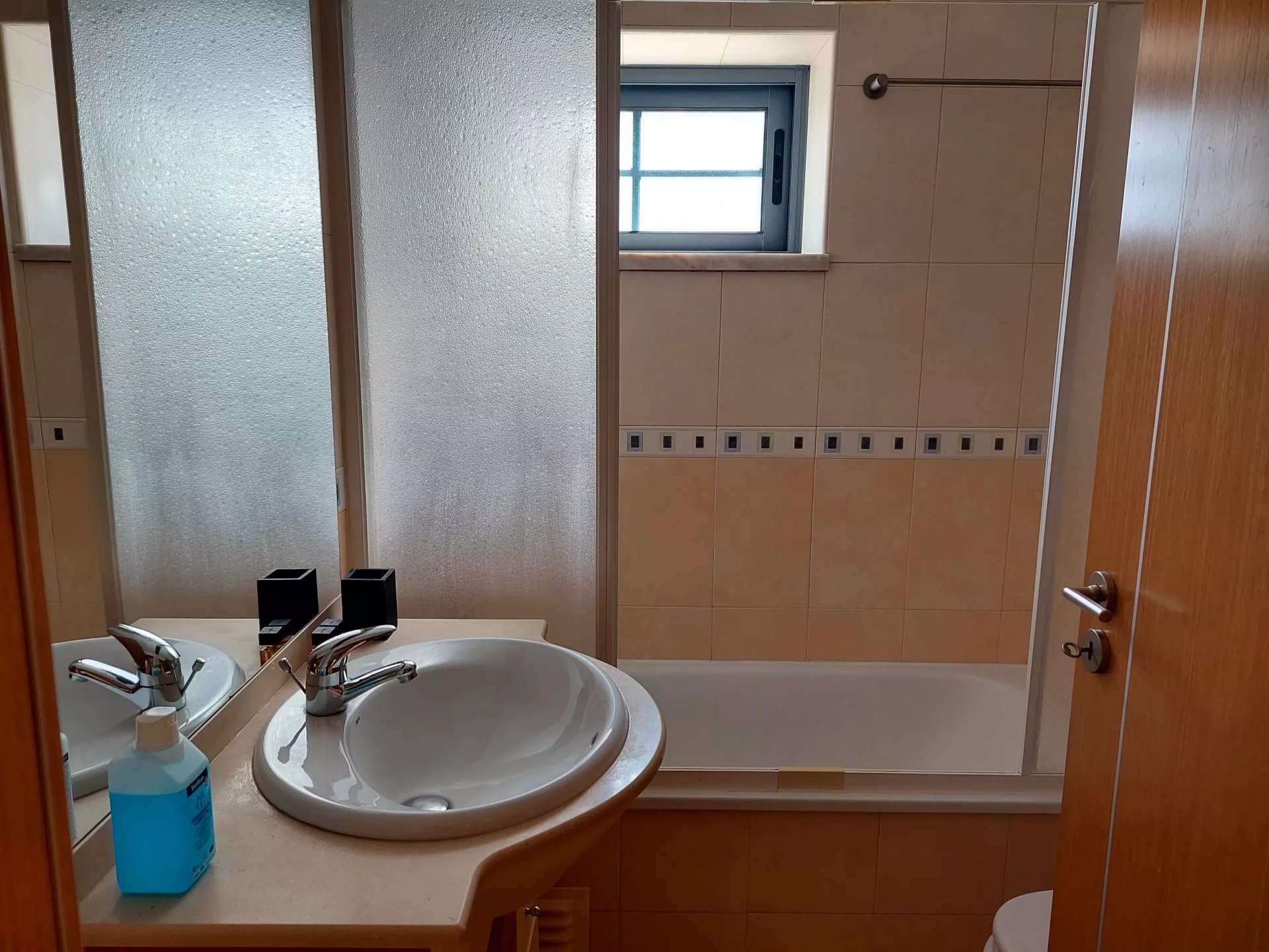 The bathroom has a relaxing bathtub, providing moments of tranquillity and leisure.