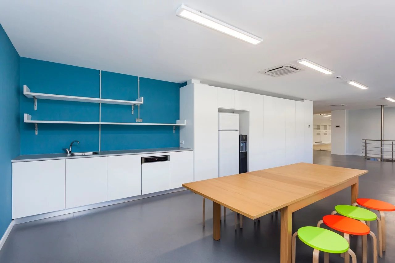 The entrance, although discreet at ground level and with less visibility, leads to a surprisingly spacious, functional and well presented second floor, guaranteeing privacy and tranquillity for the teams.