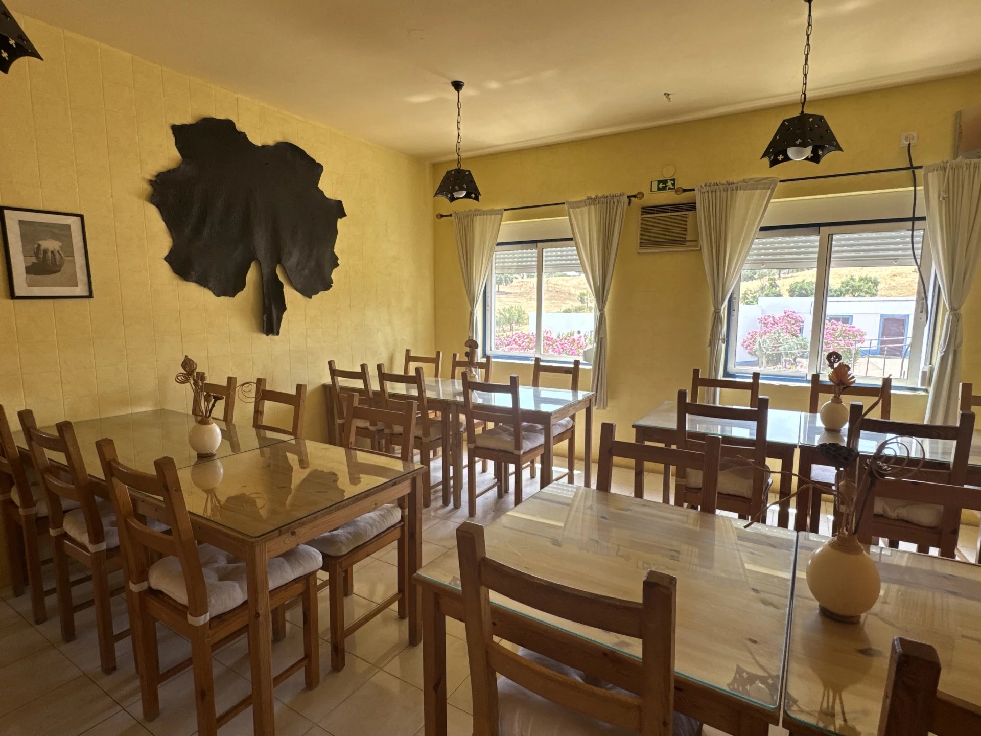 One of the centerpieces of the estate is the 200m² restaurant, fully equipped, with a functional kitchen, 98 seats inside and 60 seats spread over two pleasant terraces. This space has a recognized history in the region and can be revitalized with new gastronomic concepts.
