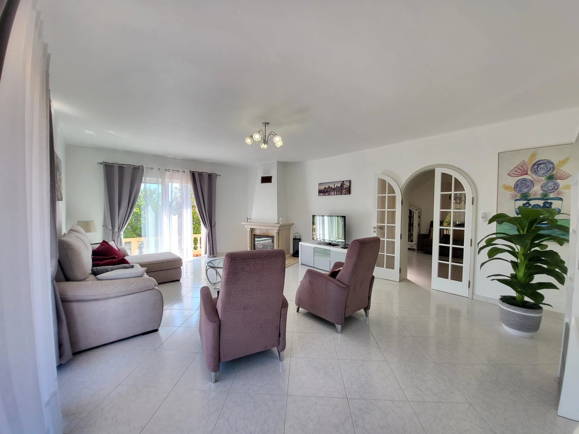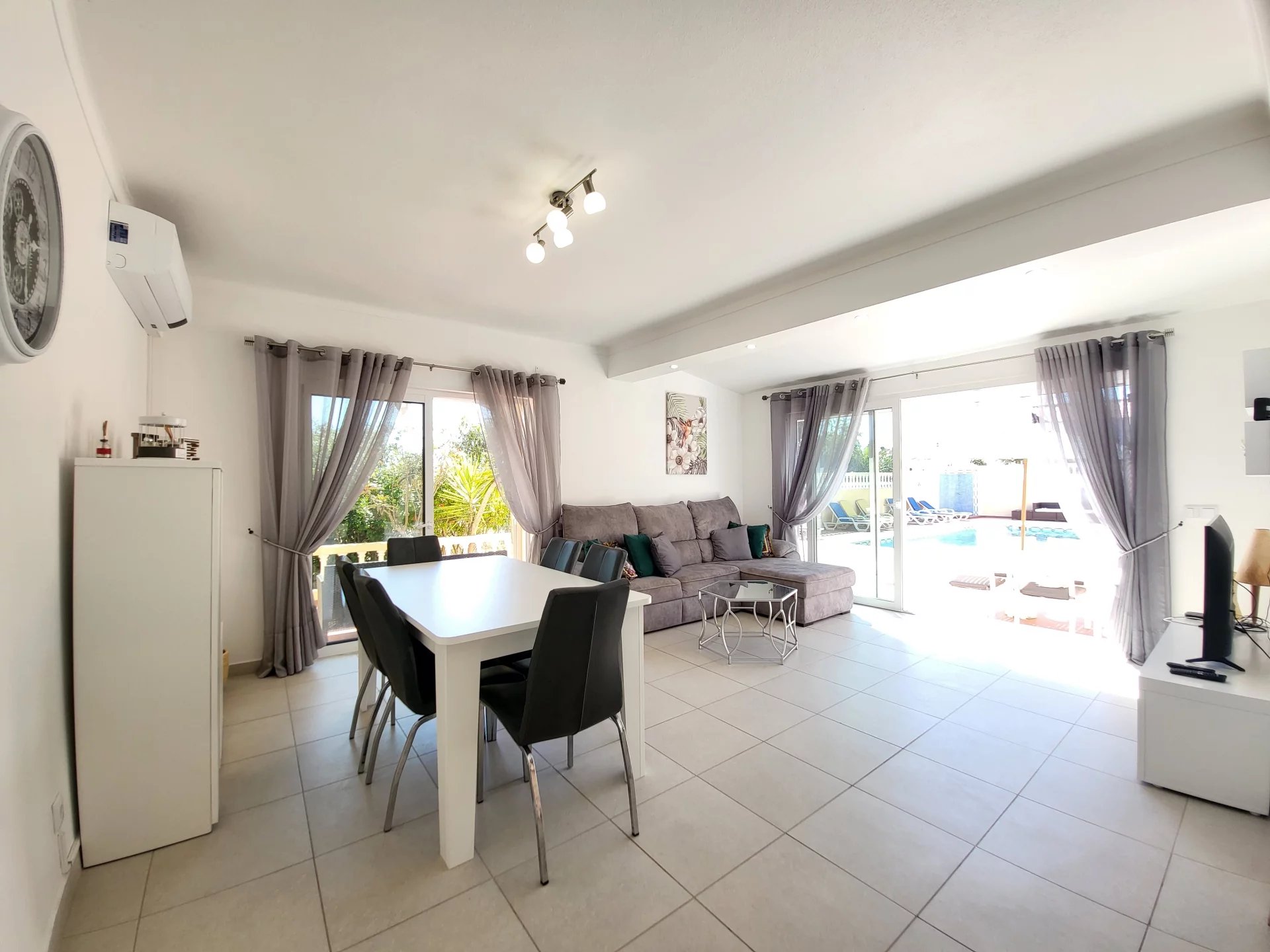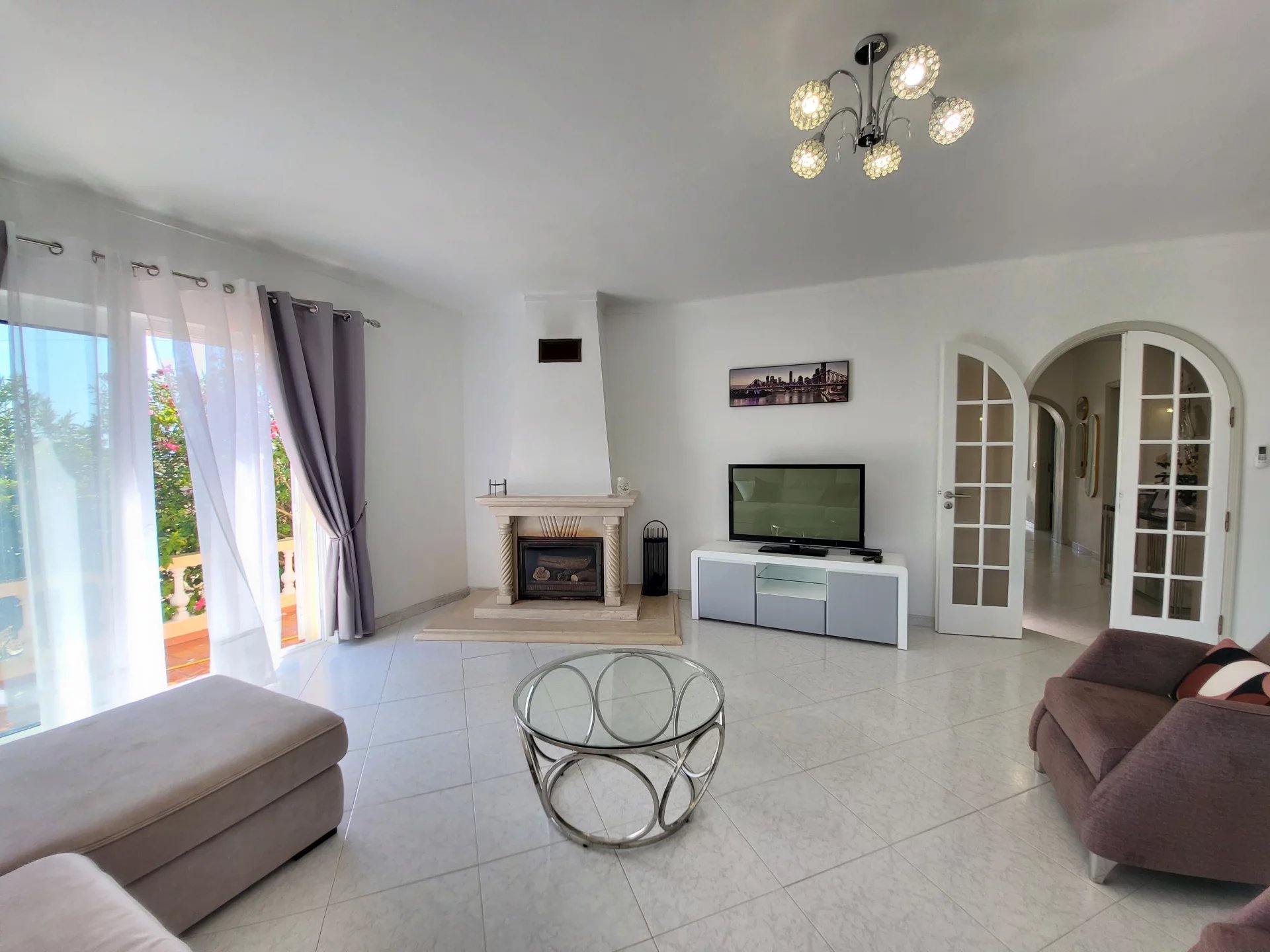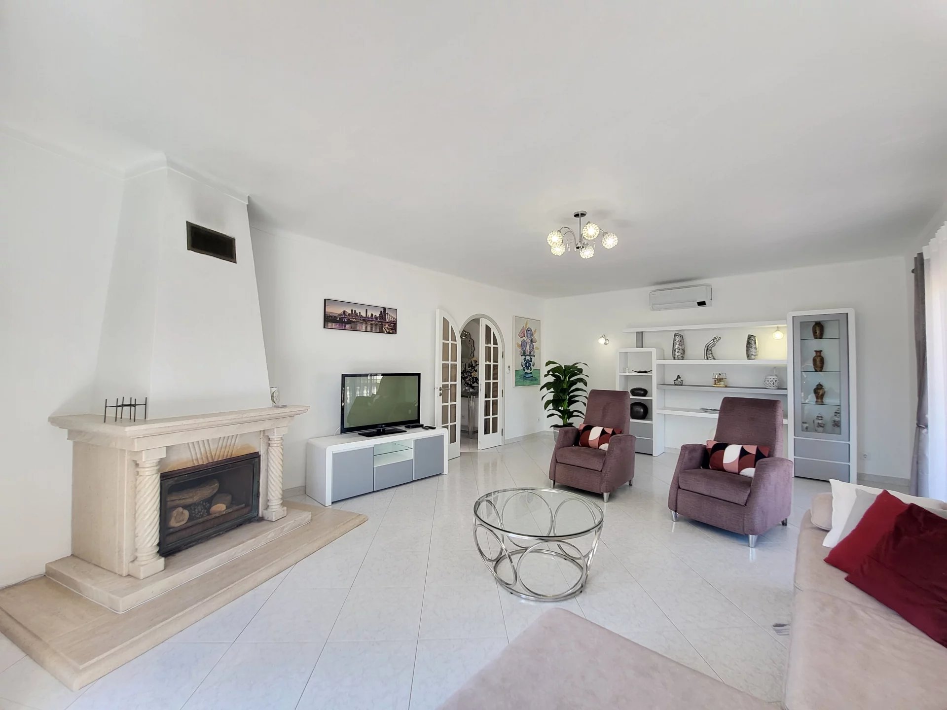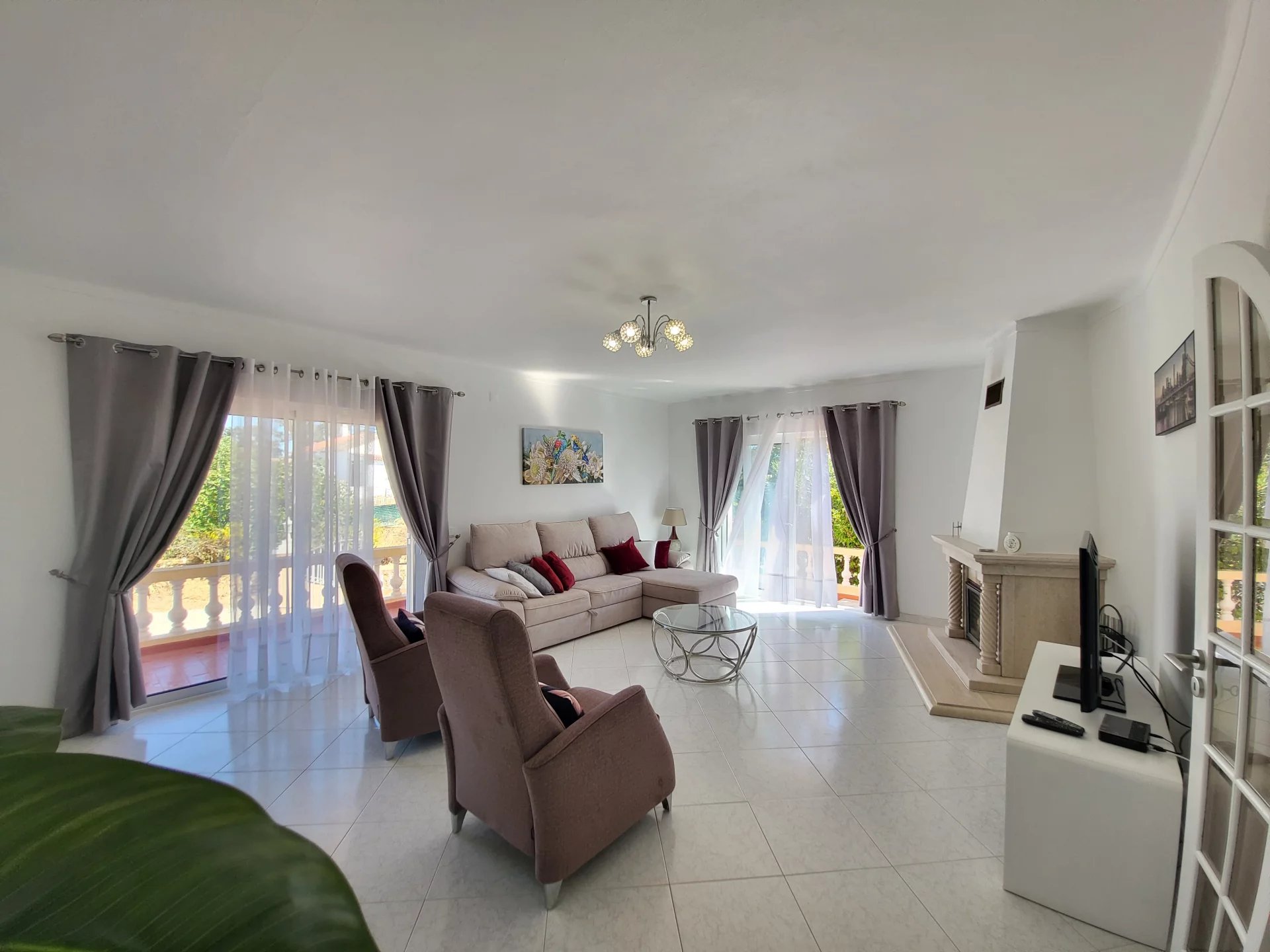 - Duas salas de estar: uma com lareira, outra com zona de refeições e cozinha americana