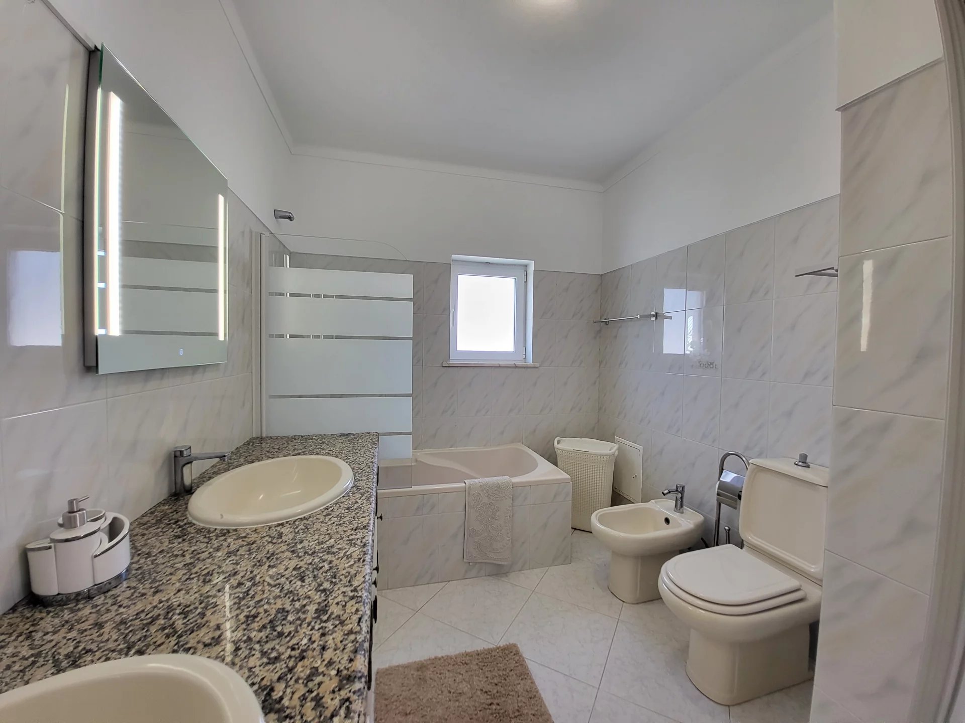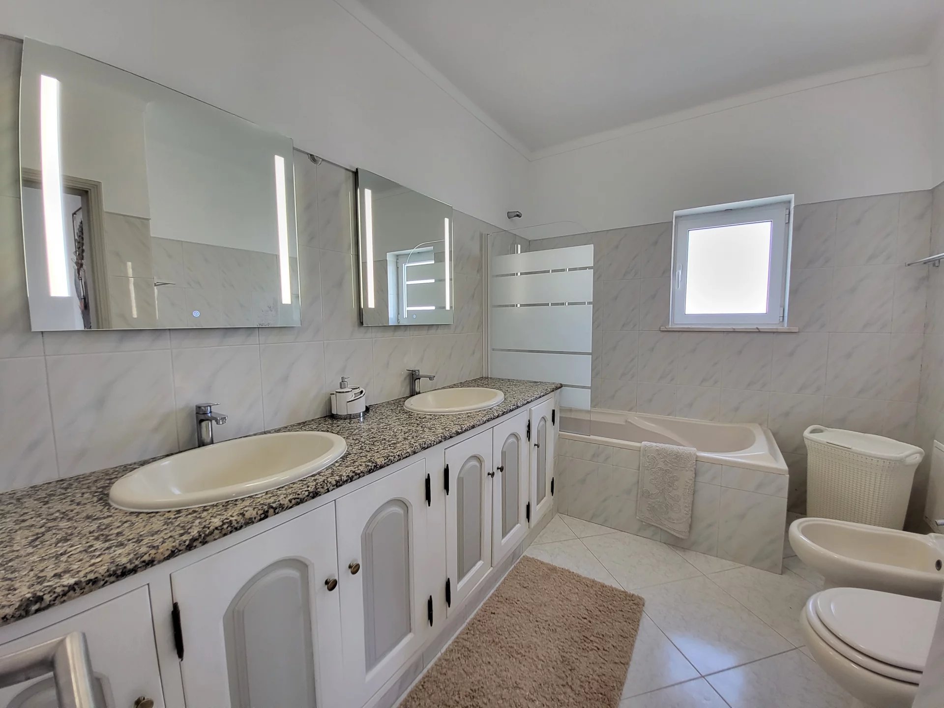- Casa de banho com lavatório duplo e banheira