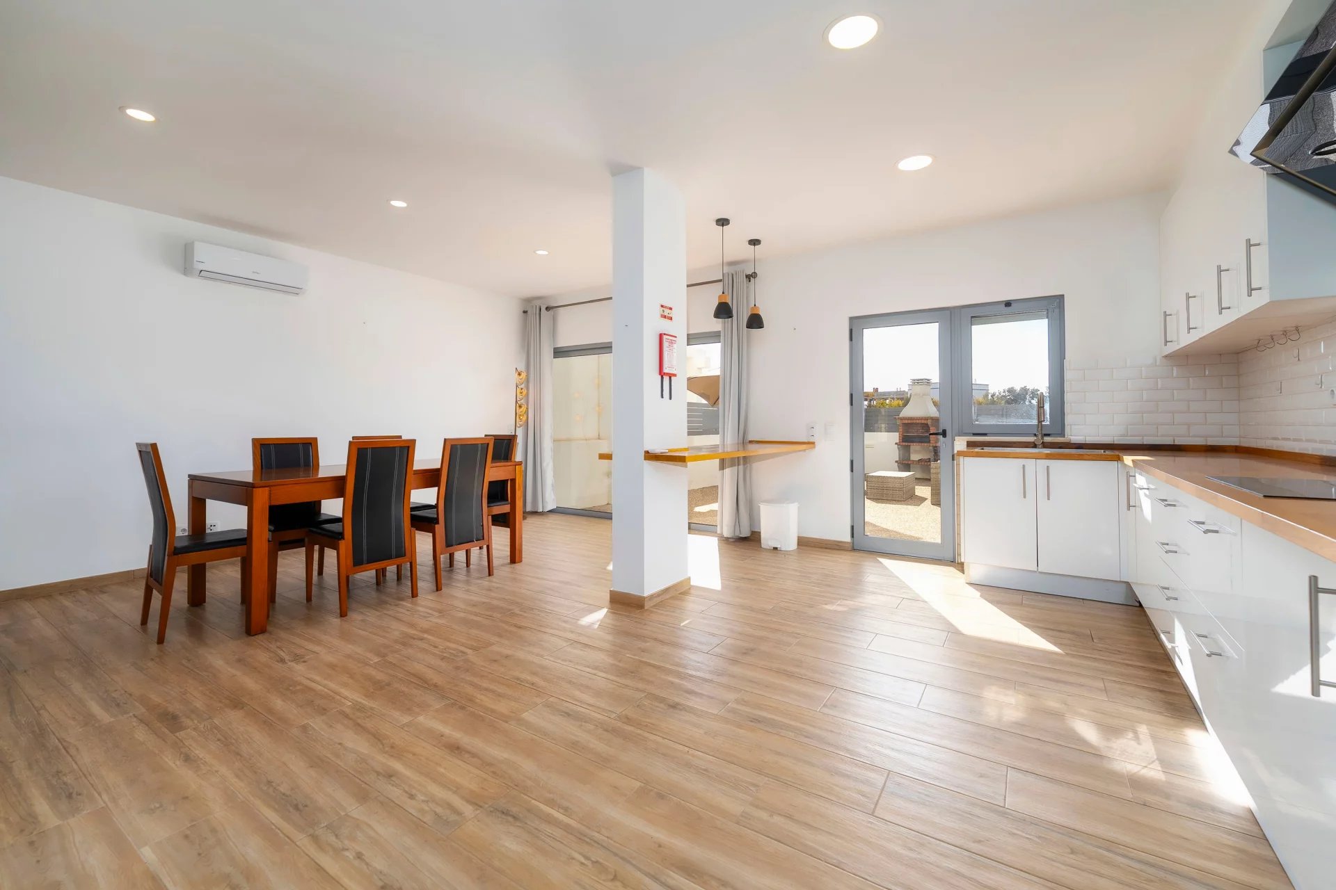 - Sala de jantar com A/C e acesso direto a pátio com zona de BBQ