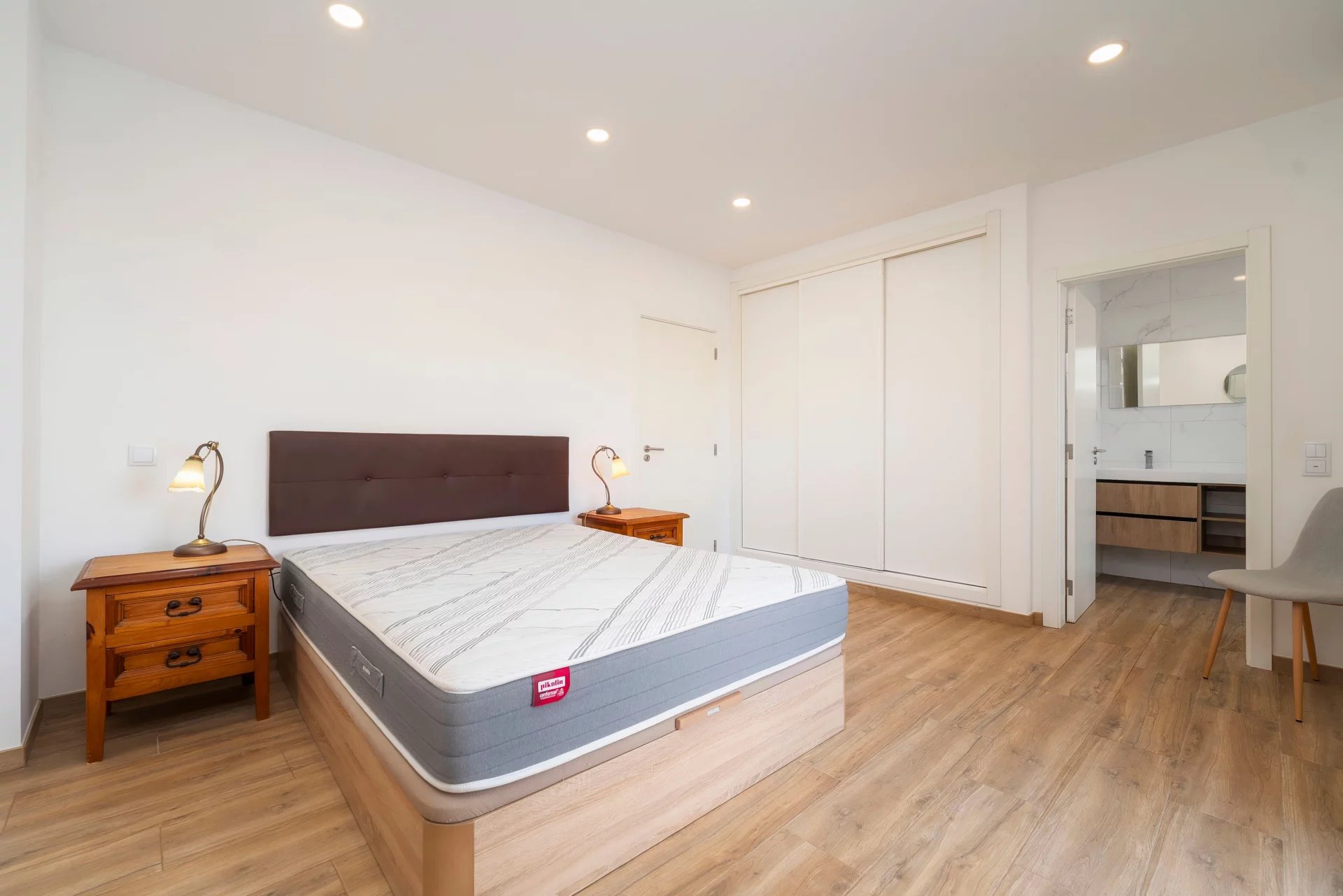 - Dois quartos adicionais, ambos com A/C, armários embutidos com iluminação por sensor de movimento e acesso à mesma varanda