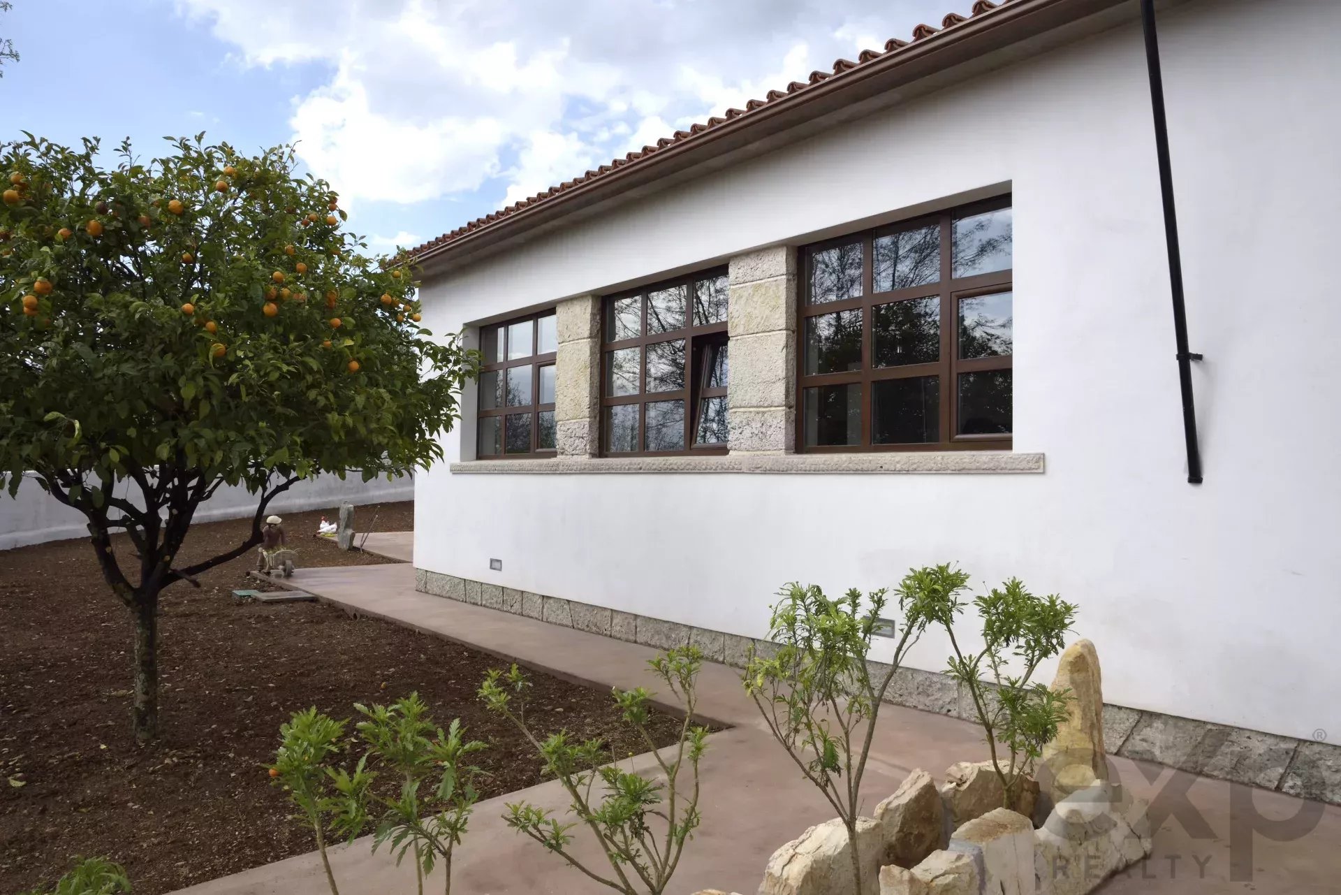 Várias moradias restauradas com entradas e jardins privados