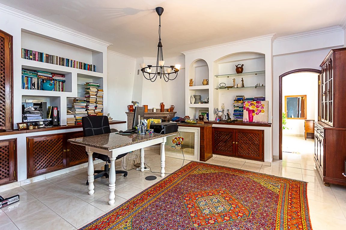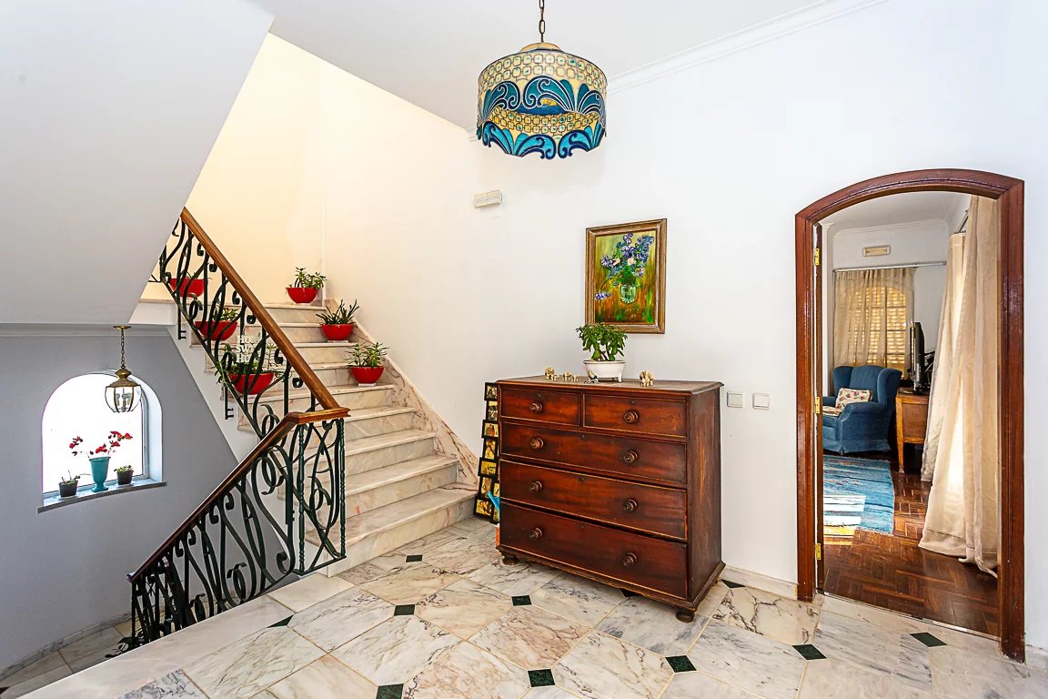 Esta propriedade de traços tipicamente algarvios é composta por uma cave com 104m2 e uma casa de banho. No rés-do-chão encontramos por um enorme hall de entrada que nos remete amplo e luminoso salão com lareira e com cerca de 60m2, totalmente renovado, uma cozinha em open space equipada com electrodomésticos de elevada qualidade com uma fantástica ilha em Silestone by Cosentino, uma despensa, um acesso directo à garagem, um salão com 25m2 convertido em escritório e uma suíte. No primeiro piso encontramos três espaçosas suítes e um fantástico e enorme terraço com vista mar.